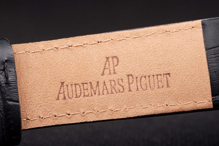 Bracelet: Heat embossed Audemars Piguet black crocodile leather strap with Audemars Piguet engraved stainless steel fold-in clasp