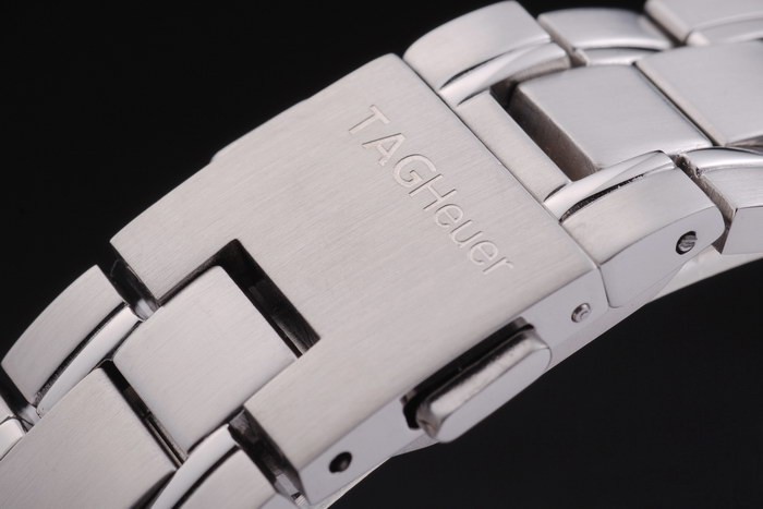 Bracelet: Brushed stainless steel link bracelet with hidden clasp and Tag Heuer marking