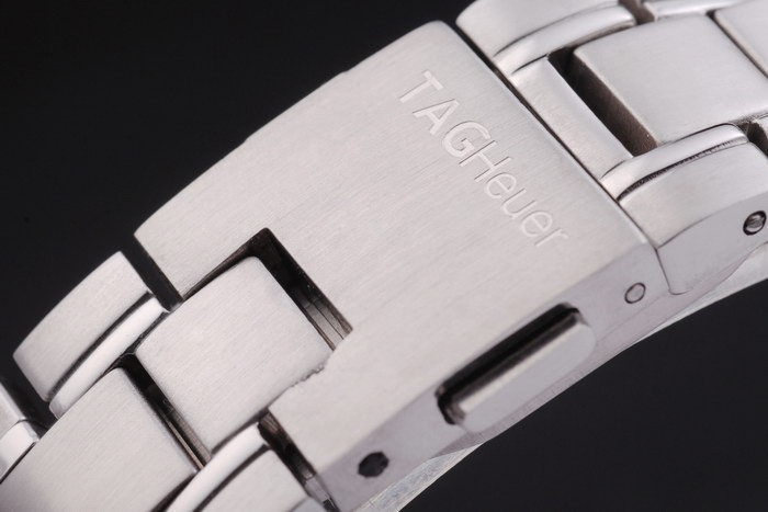 Bracelet: Brushed stainless steel link bracelet with hidden clasp and Tag Heuer marking