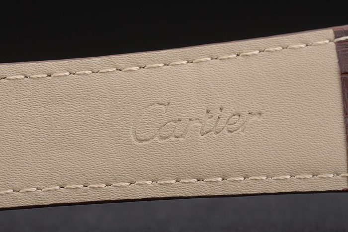 Bracelet: Cartier heat embossed brown crocodile leather strap with 18k rose-gold plated fold-in buckle clasp