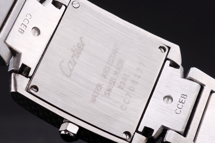 Back: screw, solid 440 stainless steel, engraved with Cartier specifications