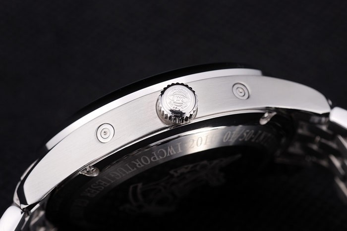 Crown: Polished stainless steel cutwork crown with IWC logo engraving