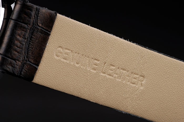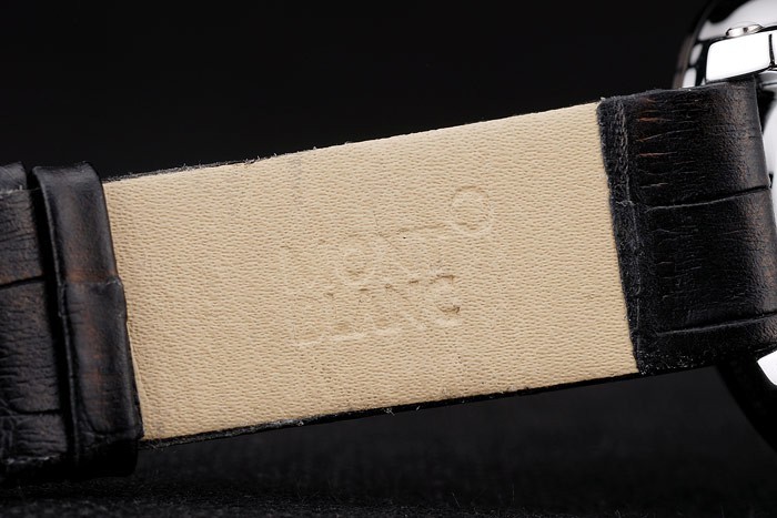 Bracelet: MontBlanc heat embossed black crocodile leather strap with MontBlanc engraved polished stainless steel hook-buckle clasp