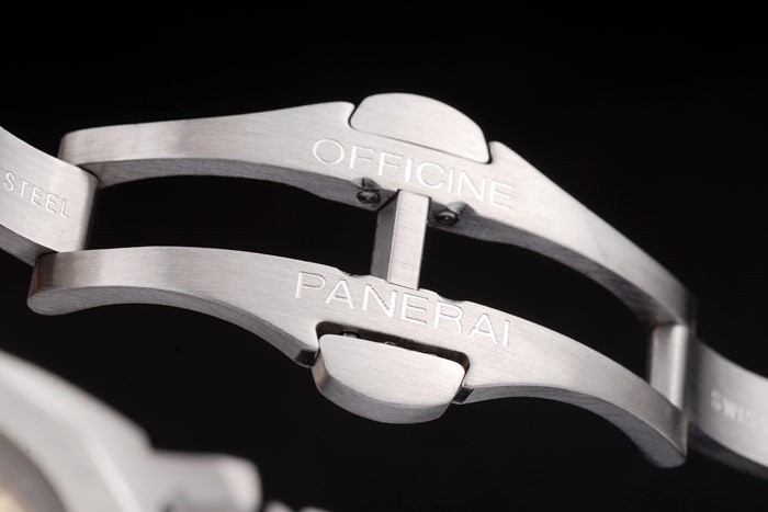 Bracelet: Brushed and polished stainless steel link bracelet with Panerai Officine engraved hidden clasp