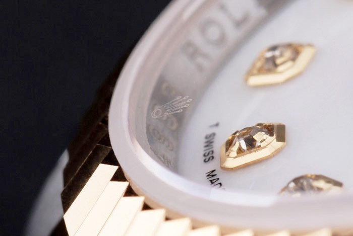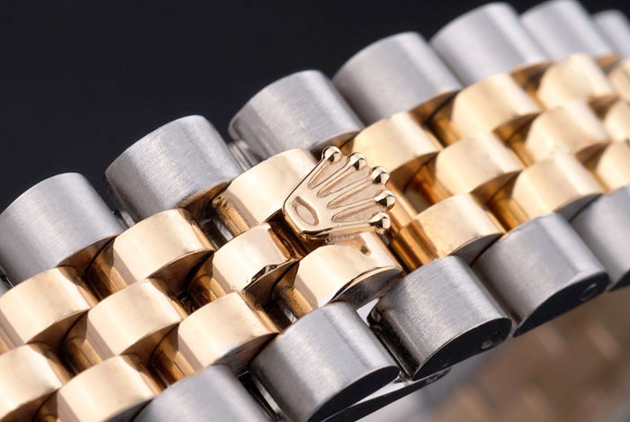 Crown: 18k yellow gold plated steel cutwork crown with Rolex logo
