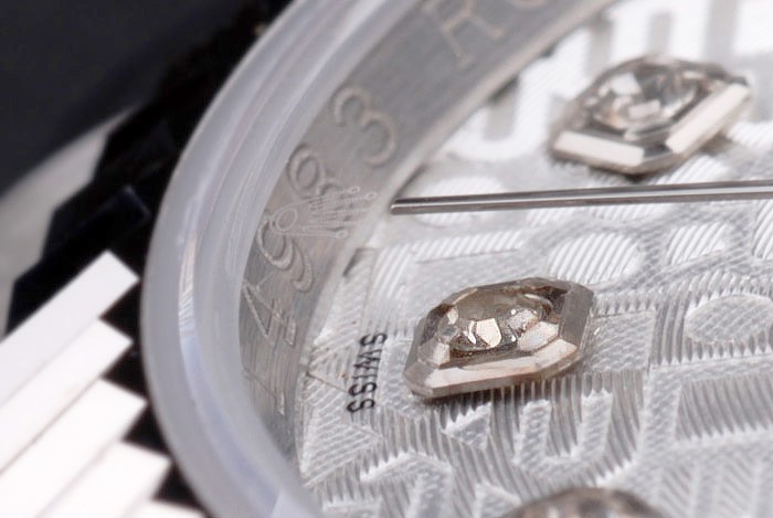 Crown: Polished stainless steel cutwork crown with Rolex logo