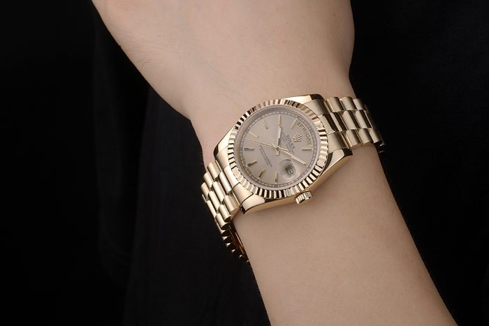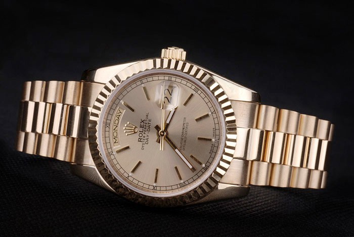 Crown: 18k yellow gold plated steel cutwork crown with Rolex logo