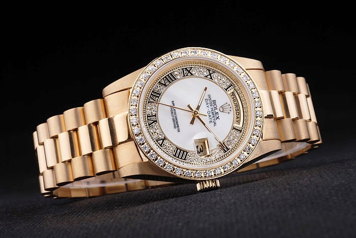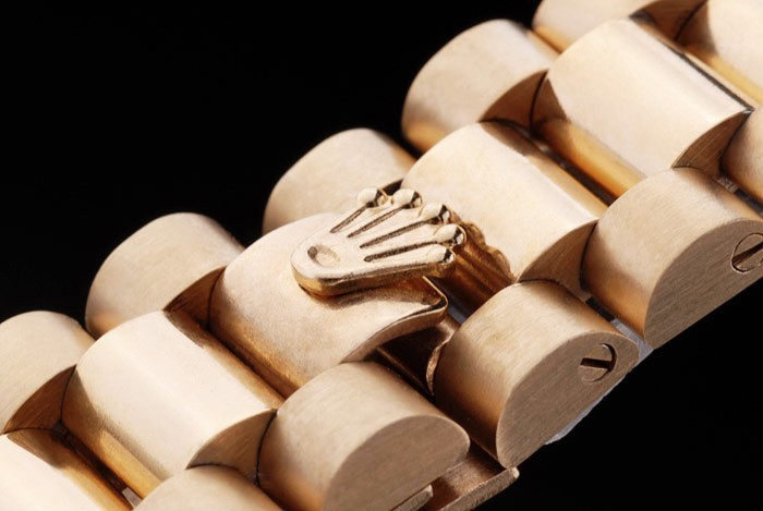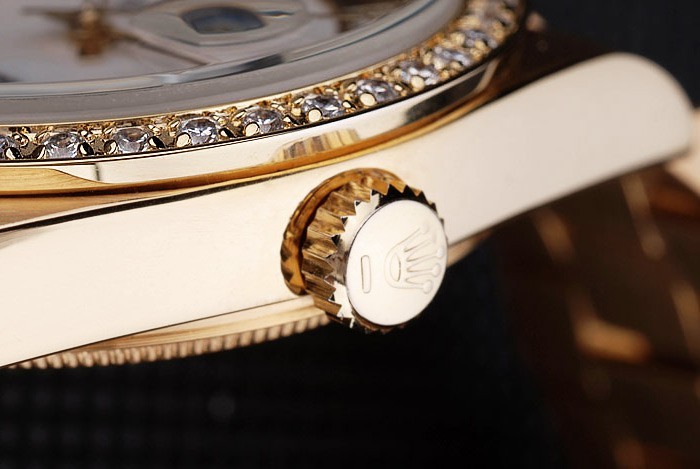 Crown: 18k yellow gold plated steel cutwork crown with Rolex logo