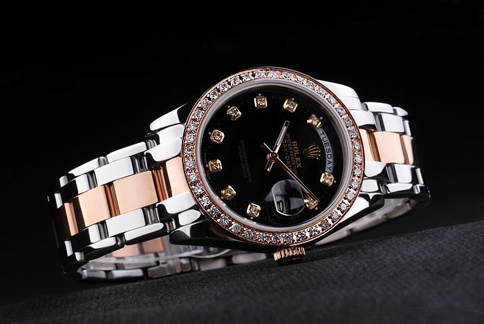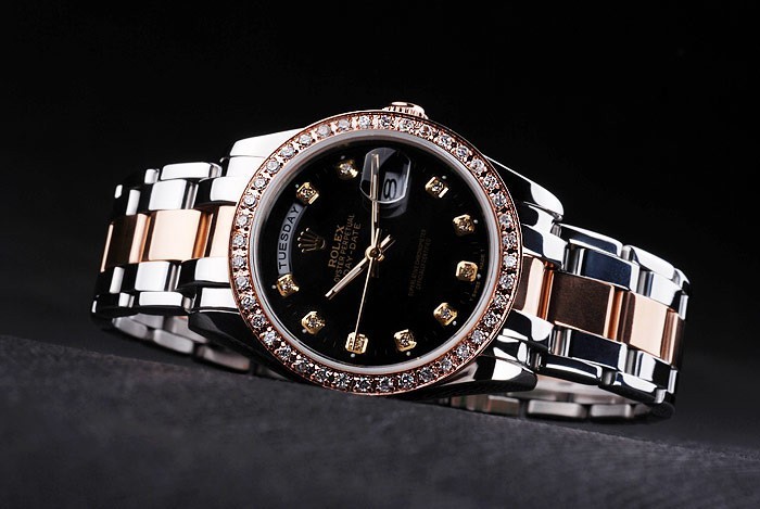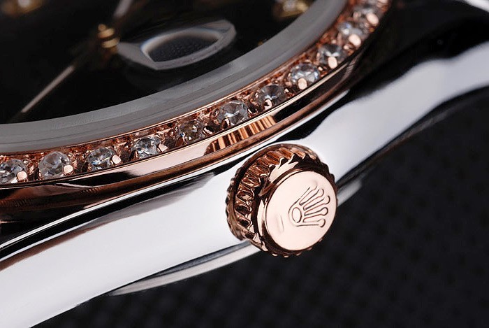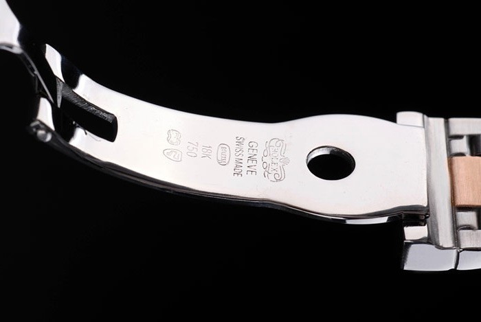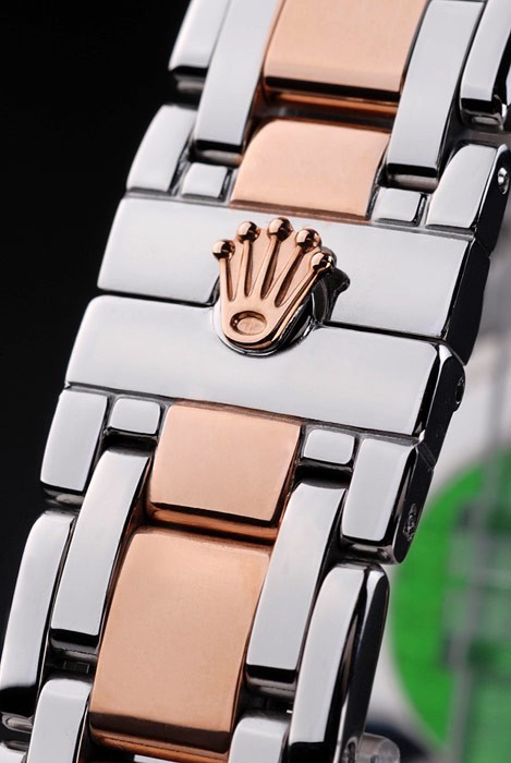 Crown: 18k rose-gold plated steel cutwork crown with Rolex logo