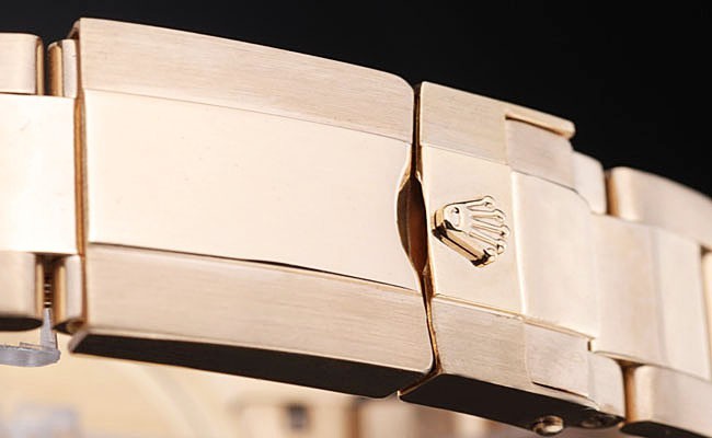 Crown: Gold toned cutwork crown with Rolex logo and two additional crowns on either side of it