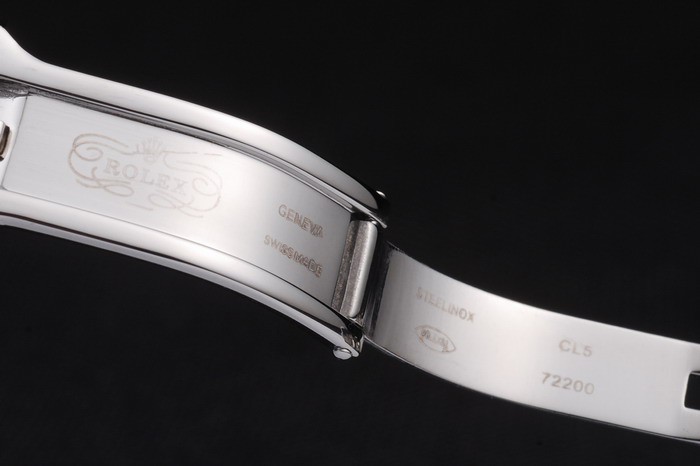 Crown: Polished stainless steel cutwork crown with Rolex logo and two additional crowns on either side of it