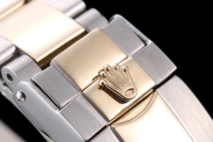 Crown: 18k yellow gold plated cutwork crown with Rolex logo