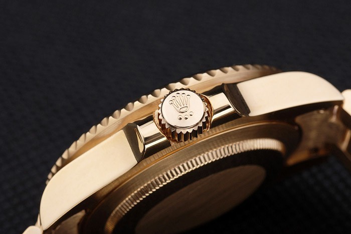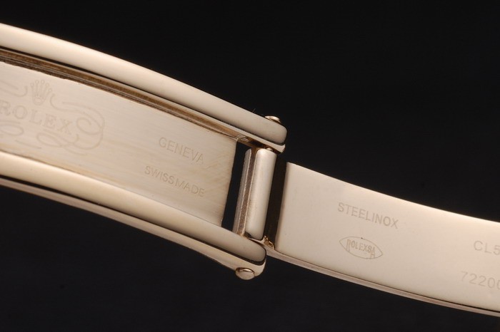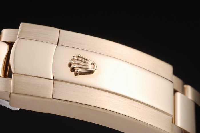 Crown: 18k yellow gold plated steel cutwork crown with Rolex logo