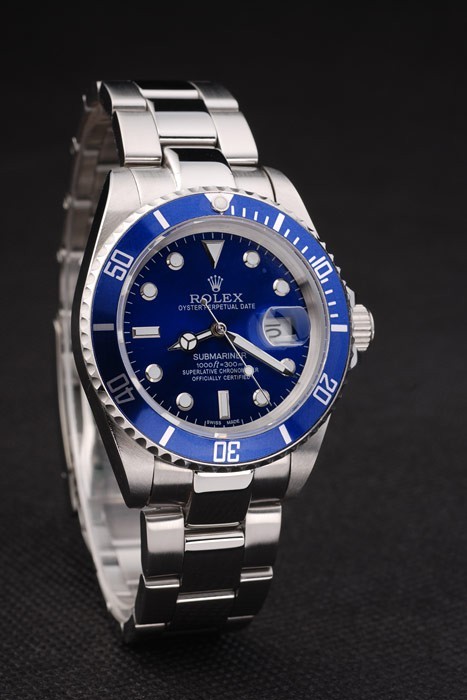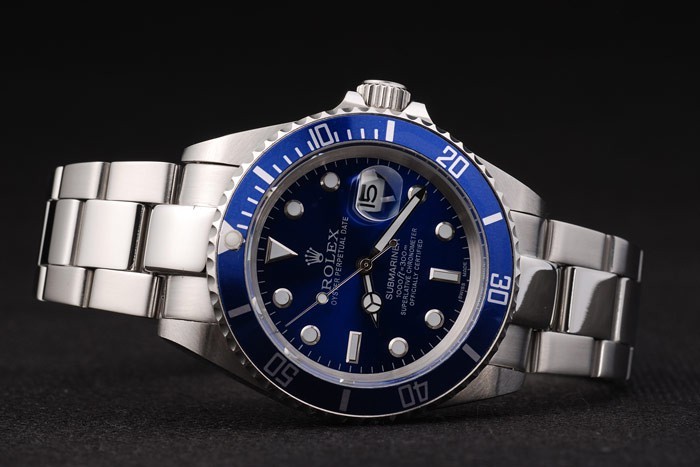 Bezel: Cutwork stainless steel bezel with white luminiscent numerical seconds marking the royal blue colored bezel