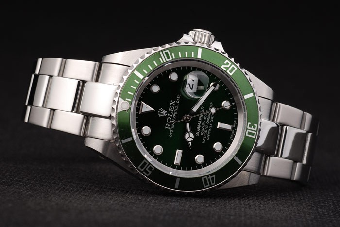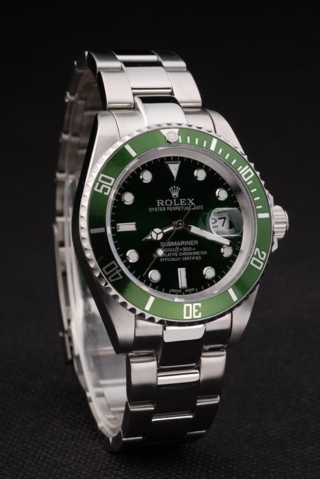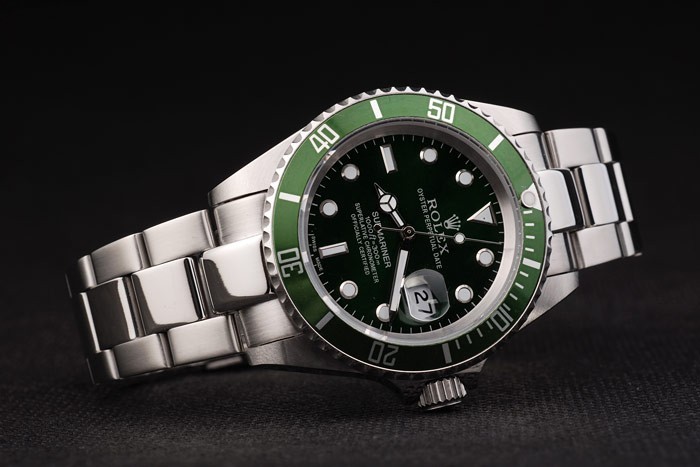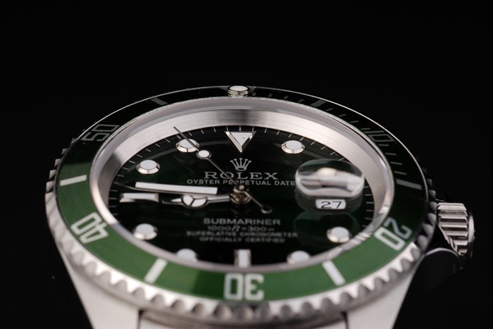 Back: Push in stainless steel back with green Rolex sticker and markings