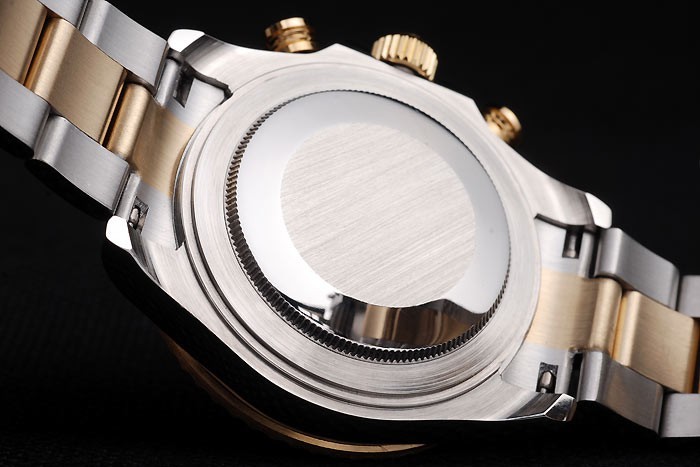 Bracelet: Brushed stainless steel and rose-gold link bracelet with Rolex engraving in the interior of the deployment clasp and a Rolex logo on top