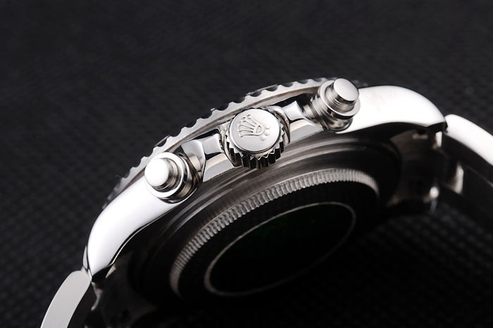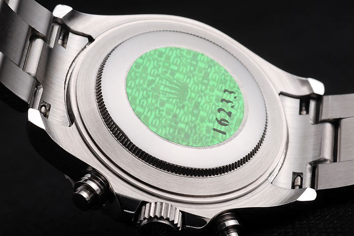 Back: Polished stainless steel push-in back with green Rolex logo stamp