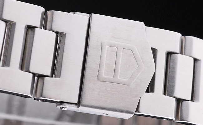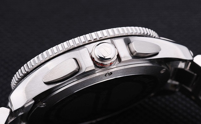 Crown: Polished stainless steel cutwork crown with Tag Heuer logo plus two additional crowns on either side and one on the opposite top corner
