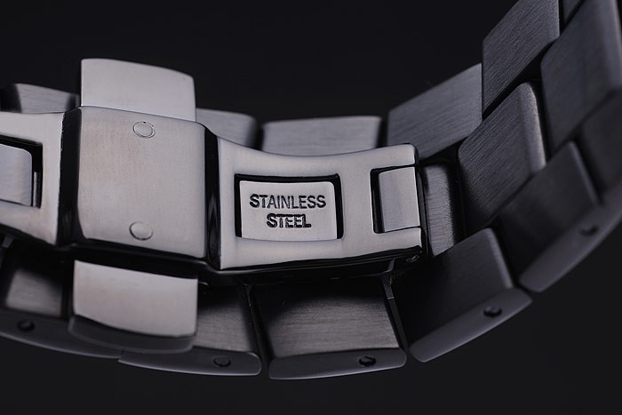 Bracelet: Ion-plated stainless steel link bracelet with push button hidden clasp