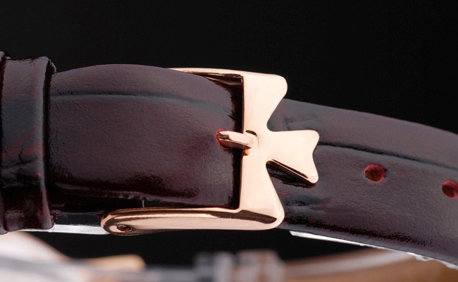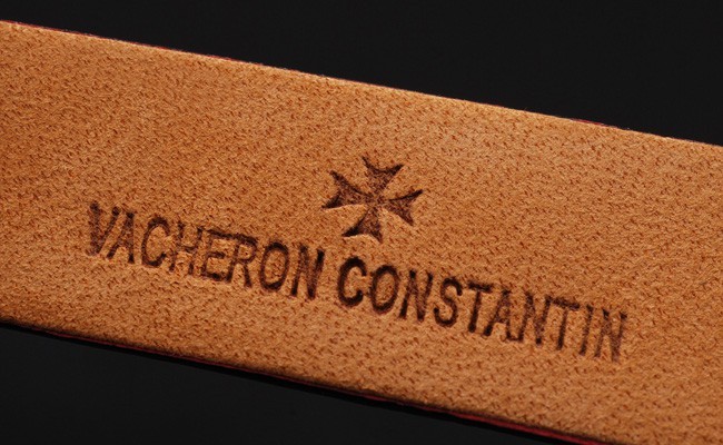 Bracelet: Rich maroon crocodile leather strap with ‘Vacheron Constantin’ inscription and hook buckle clasp